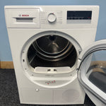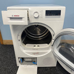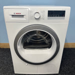 The Bosch WTN85280GB is equipped with a variety of 15 drying programs, including specialised cycles for allergy sufferers, sportswear, and a Super Quick 40 for when you're in a hurry. The large porthole and 175° door opening facilitate easy loading and unloading, while the LED display and dial controls offer intuitive operation with a delay timer for added convenience. Its quiet operation at 64 dB(A) ensures minimal disturbance. Experience the perfect blend of functionality and care with the Bosch WTN85280GB Condenser Dryer, a smart addition to any home laundry setup.