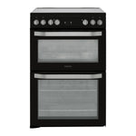 The Hotpoint HDM67V9HCB is a 60 cm freestanding electric double oven cooker, finished in sleek black for a modern and stylish appearance. Combining two spacious ovens with a ceramic hob, it offers the flexibility and performance needed for family cooking.