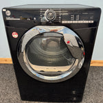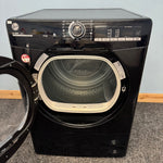 The Hoover HLEC9TCEB-80 is a sleek 9kg condenser tumble dryer, designed for modern homes that value both performance and style. Its bold black finish, large porthole door, and digital display create a high-end, user-friendly look that stands out in any utility space.