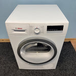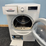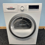 The Bosch WTN85280GB is equipped with a variety of 15 drying programs, including specialised cycles for allergy sufferers, sportswear, and a Super Quick 40 for when you're in a hurry. The large porthole and 175° door opening facilitate easy loading and unloading, while the LED display and dial controls offer intuitive operation with a delay timer for added convenience. Its quiet operation at 64 dB(A) ensures minimal disturbance. Experience the perfect blend of functionality and care with the Bosch WTN85280GB Condenser Dryer, a smart addition to any home laundry setup.